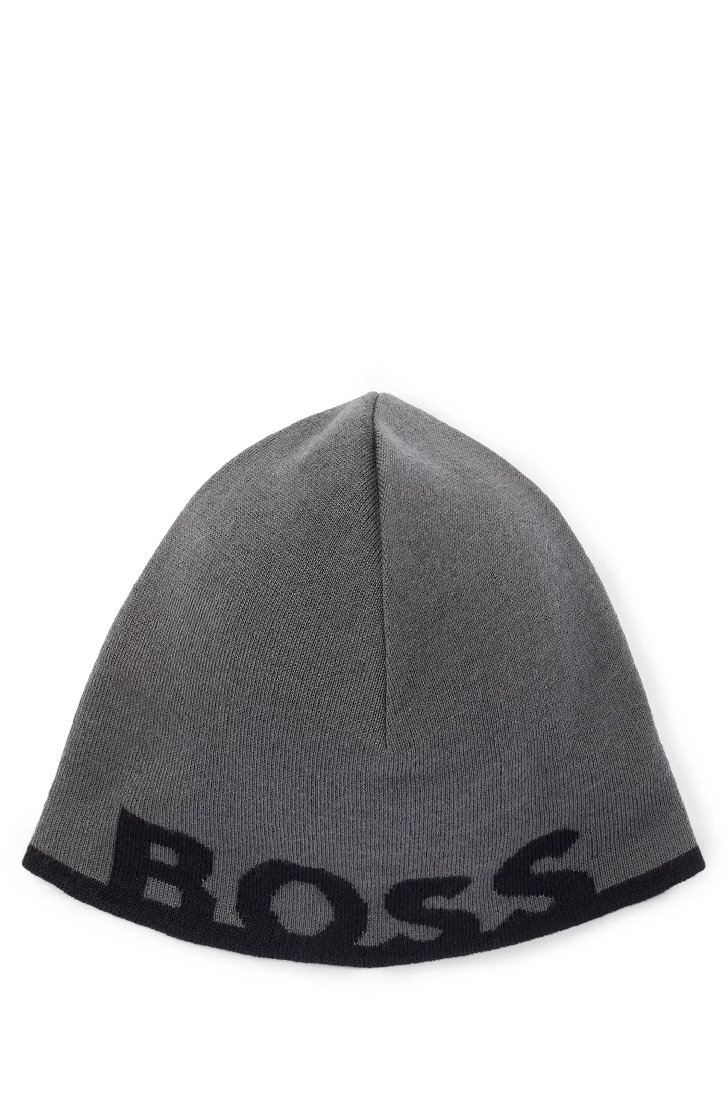 Un bonnet BOSS en laine mélangée orné d’un logo et d’une rayure.