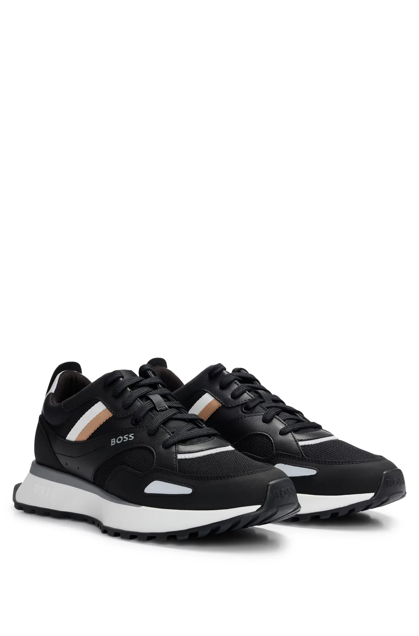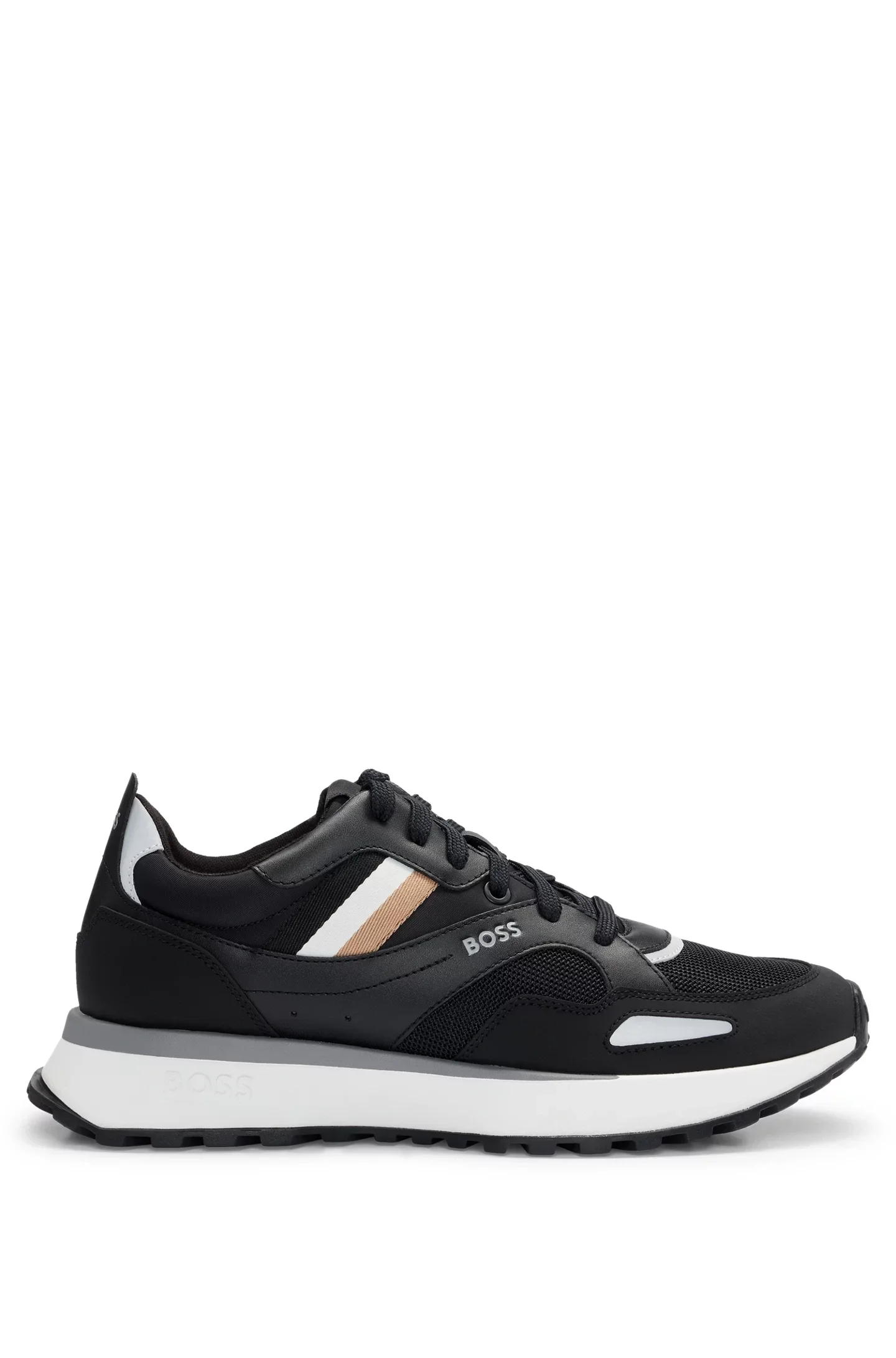 Des baskets au style athlétique signées BOSS, confectionnées dans un mélange de textures alliant du mesh et du similicuir.
