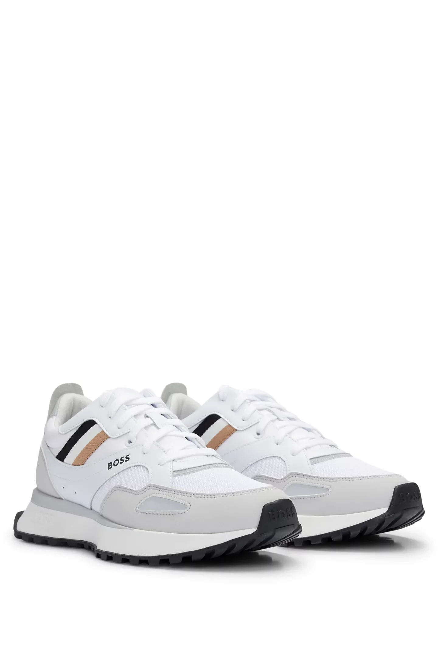 Des baskets au style athlétique signées BOSS, confectionnées dans un mélange de textures alliant du mesh et du similicuir.