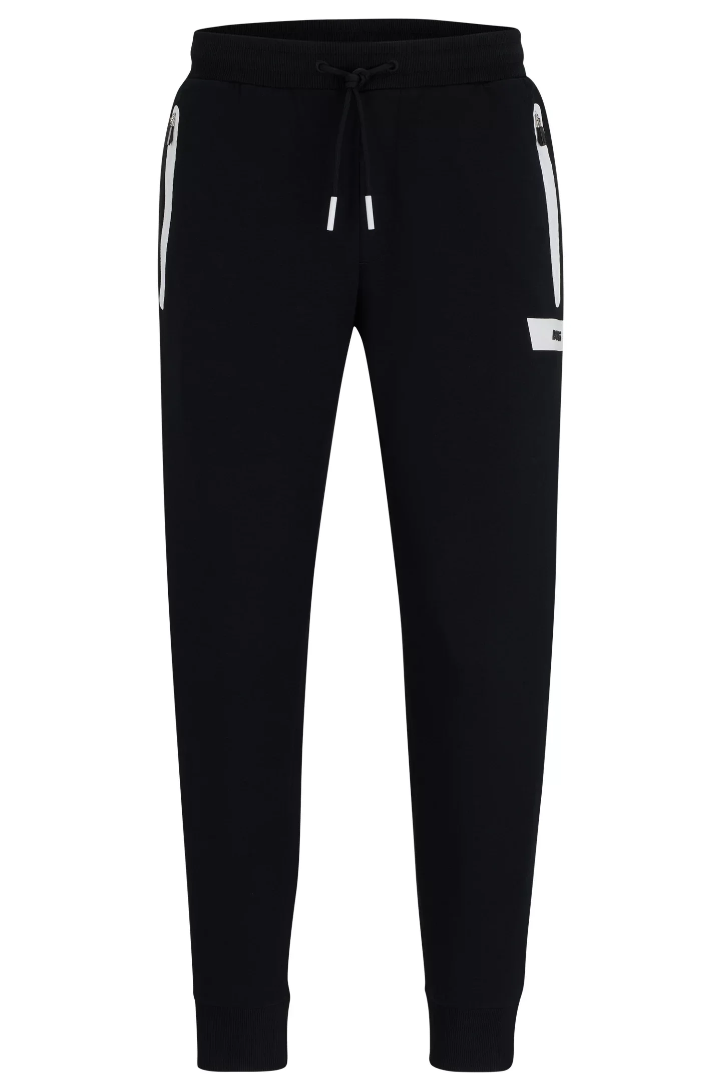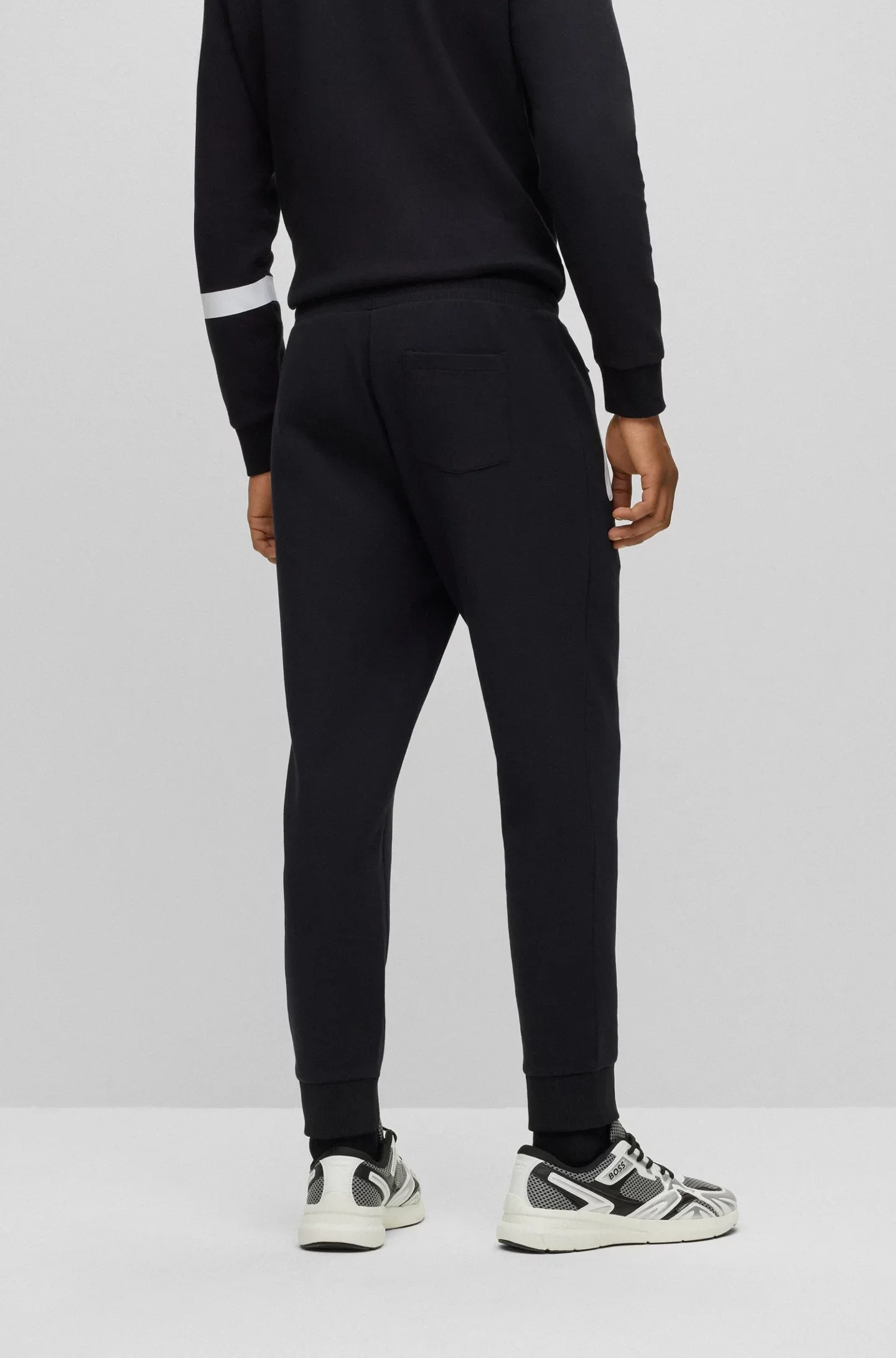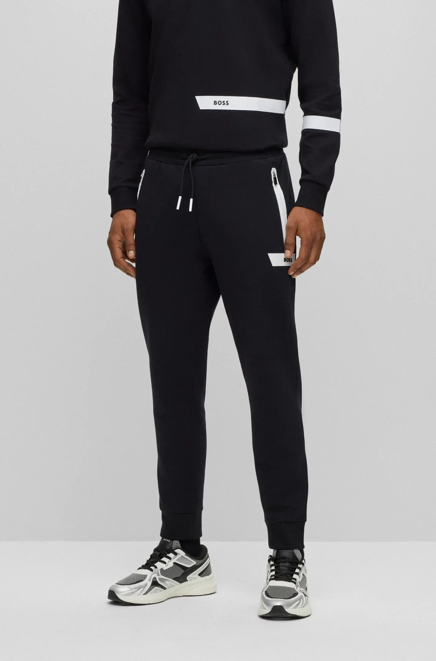 Un pantalon de survêtement BOSS Homme Regular Fit resserré au bas des jambes, confectionné en jersey stretch et pourvu de poches zippées à passepoil collé et d’une rayure graphique logotée. Pour nos articles ÉCO-RESPONSABLES, nous utilisons toujours au minimum 60 % de matières premières plus durables. Ce produit est confectionné avec du coton cultivé conformément à l’engagement de HUGO BOSS en faveur de l’utilisation de coton et de fibres végétales provenant de sources appliquant des pratiques de gestion améliorées pour le bien de l’Homme et de l’environnement.