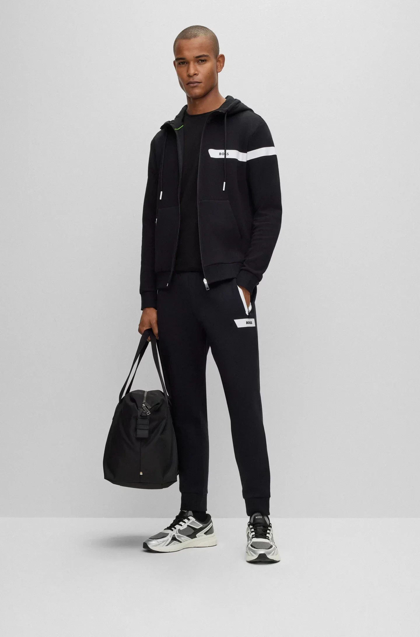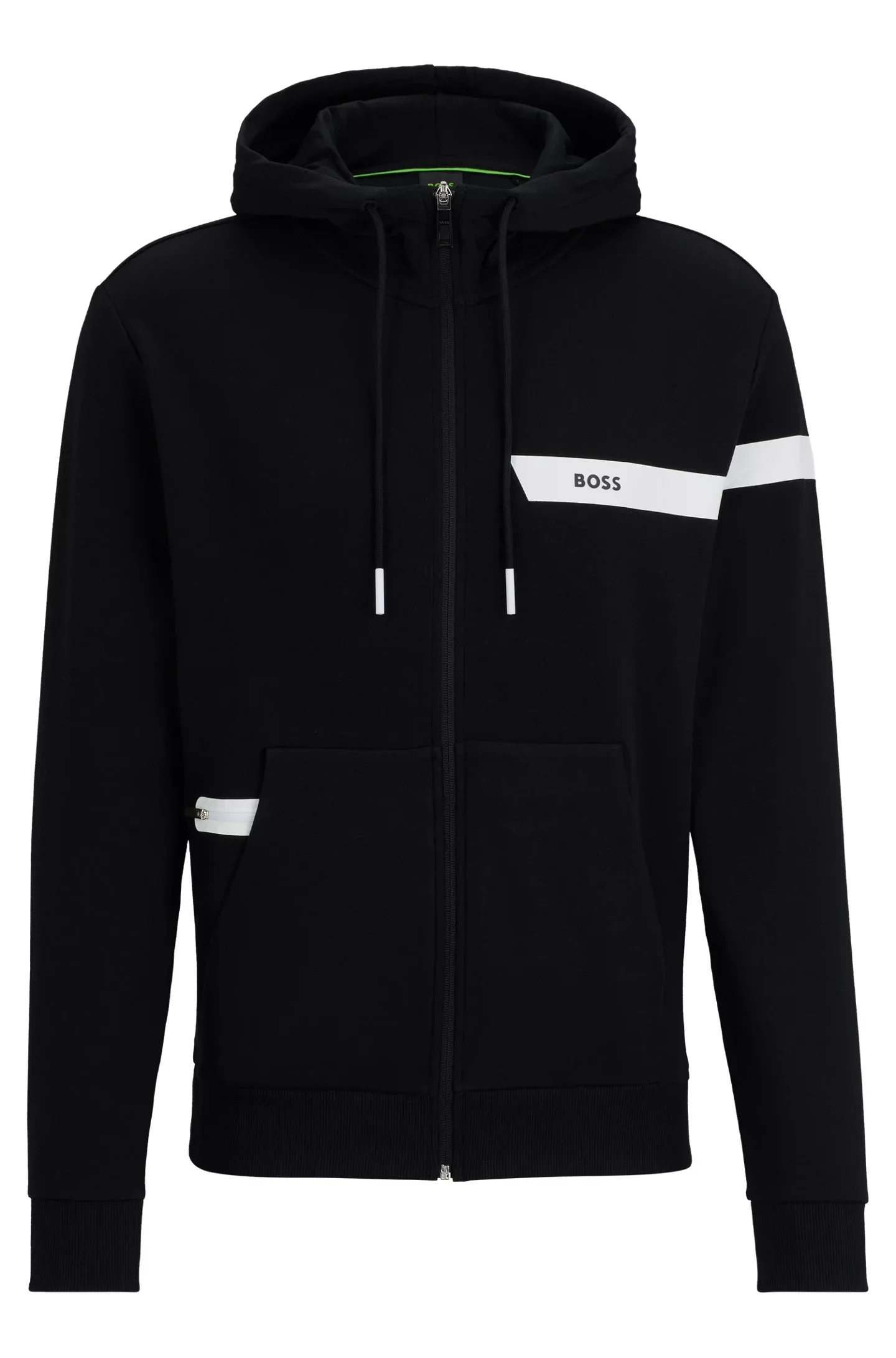 Un sweat à capuche à fermeture éclair Regular Fit BOSS Homme au style décontracté, confectionné en matière stretch et orné d’une rayure logotée graphique.