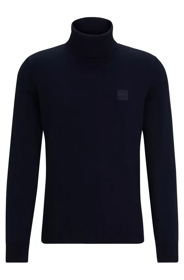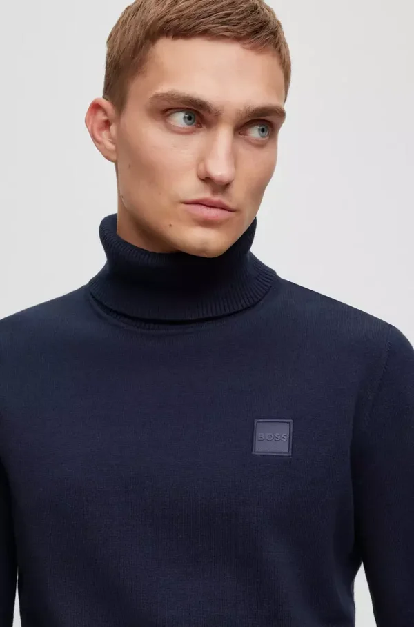 Un pull à col roulé Regular Fit emblématique confectionné en coton et cachemire et orné d’un patch logo, signé BOSS Homme.