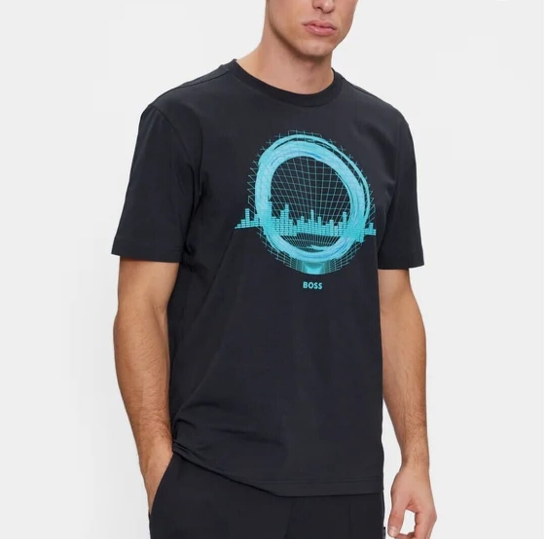 Succombez au charme du t-shirt BOSS Homme à manches courtes. Confectionné en coton stretch et orné d'un motif artistique d'inspiration techno et d'un logo sur la poitrine, il vous assure un style impeccable en toute occasion.