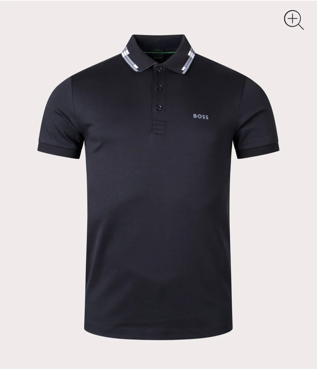 Un polo Slim Fit BOSS Homme en coton interlock, rehaussé de finitions graphiques d’inspiration techno sur le col et d’un logo sur le côté gauche de la poitrine.