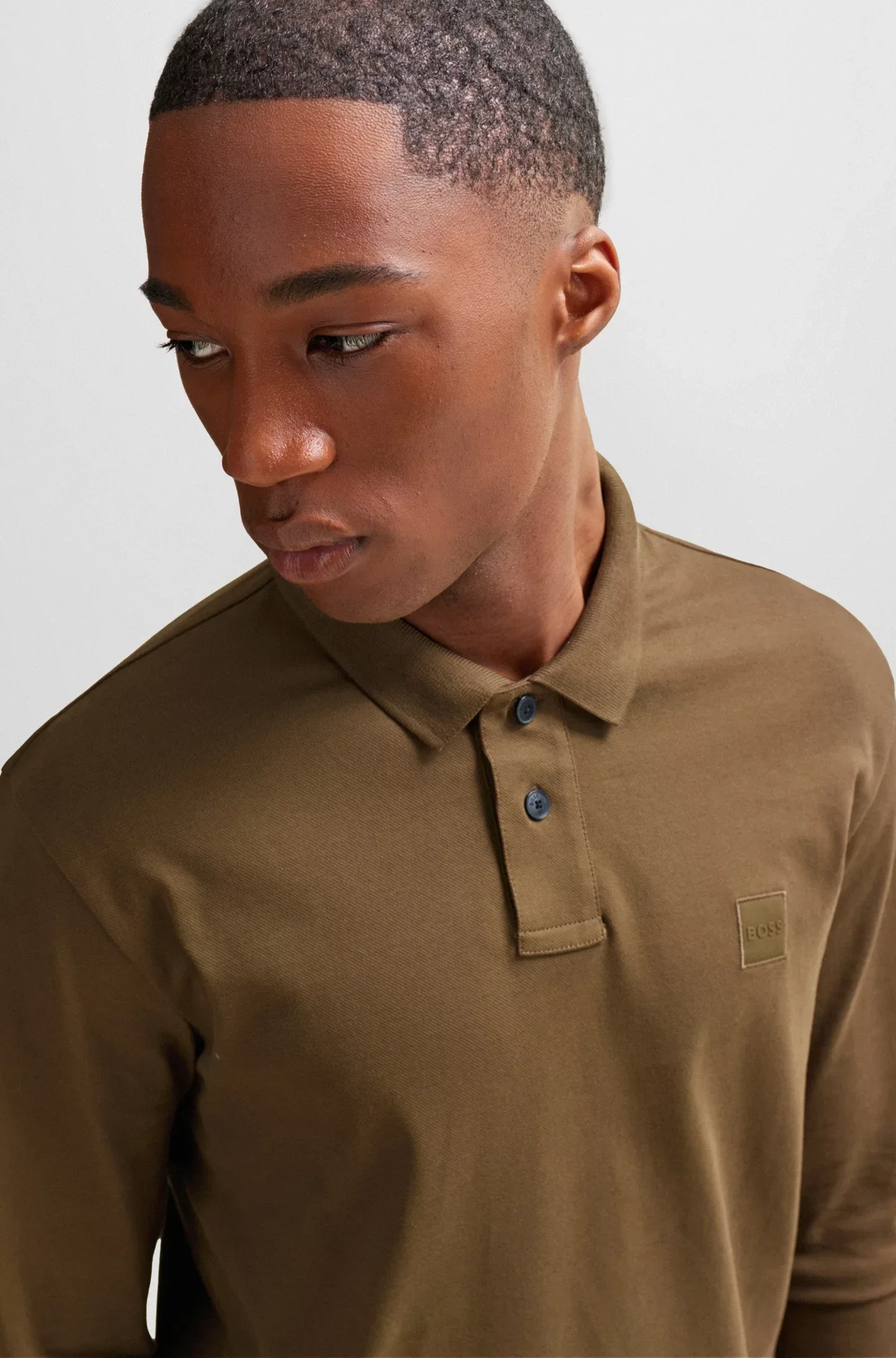 Un polo décontracté à manches longues signé BOSS Homme, confectionné en piqué stretch et orné d’un patch logo ton sur ton. En achetant cet article, vous contribuez à la protection de l’environnement et à une culture du coton durable en Afrique. L’initiative CmiA s’engage à améliorer les conditions de vie et de travail des cultivateurs de coton africains et à préserver la nature.