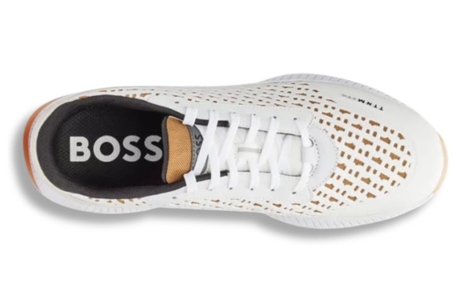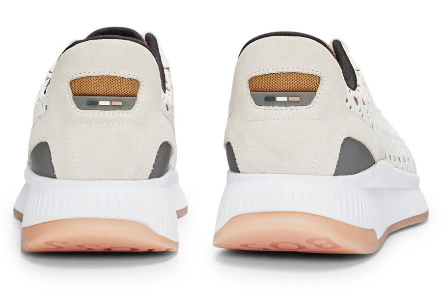 Des baskets BOSS distinctives confectionnées dans un mélange de cuir suédé doux et de mesh monogramme.