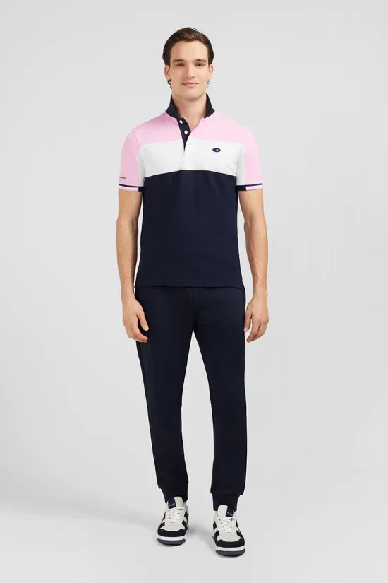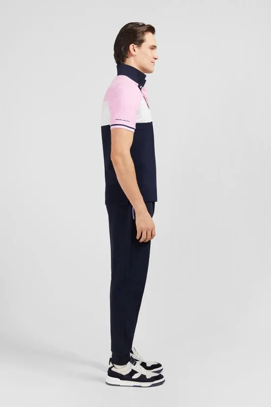 Polo Eden Park colorblock rose en coton piqué à broderie XV de France