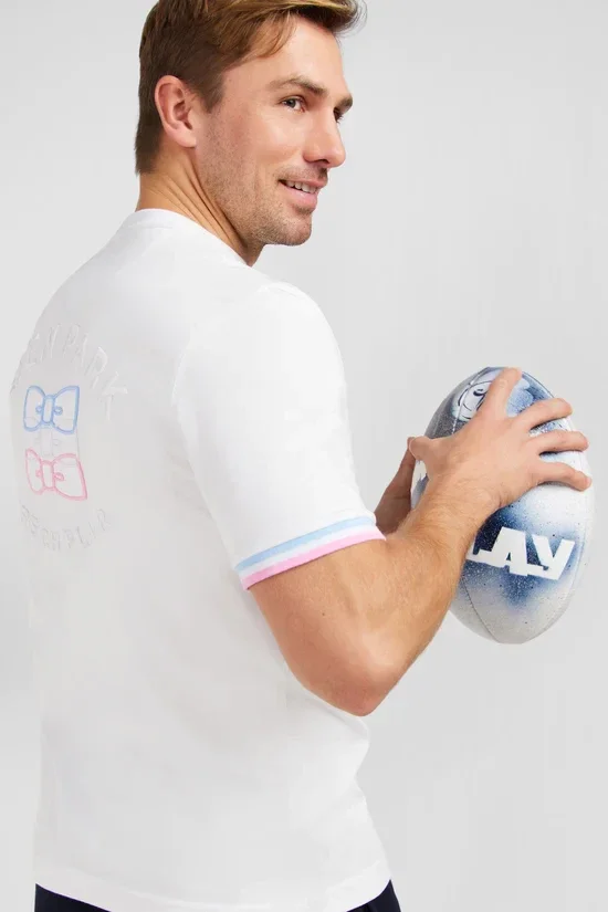 - Broderie ton sur ton Eden Park et nœuds papillons tricolores au dos