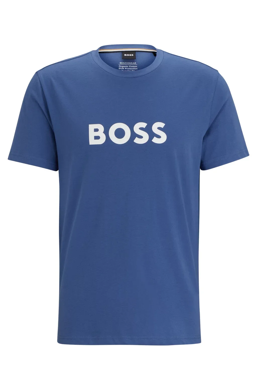 T-SHIRT BOSS EN COTON BIOLOGIQUE AVEC GRAND LOGO - med blue