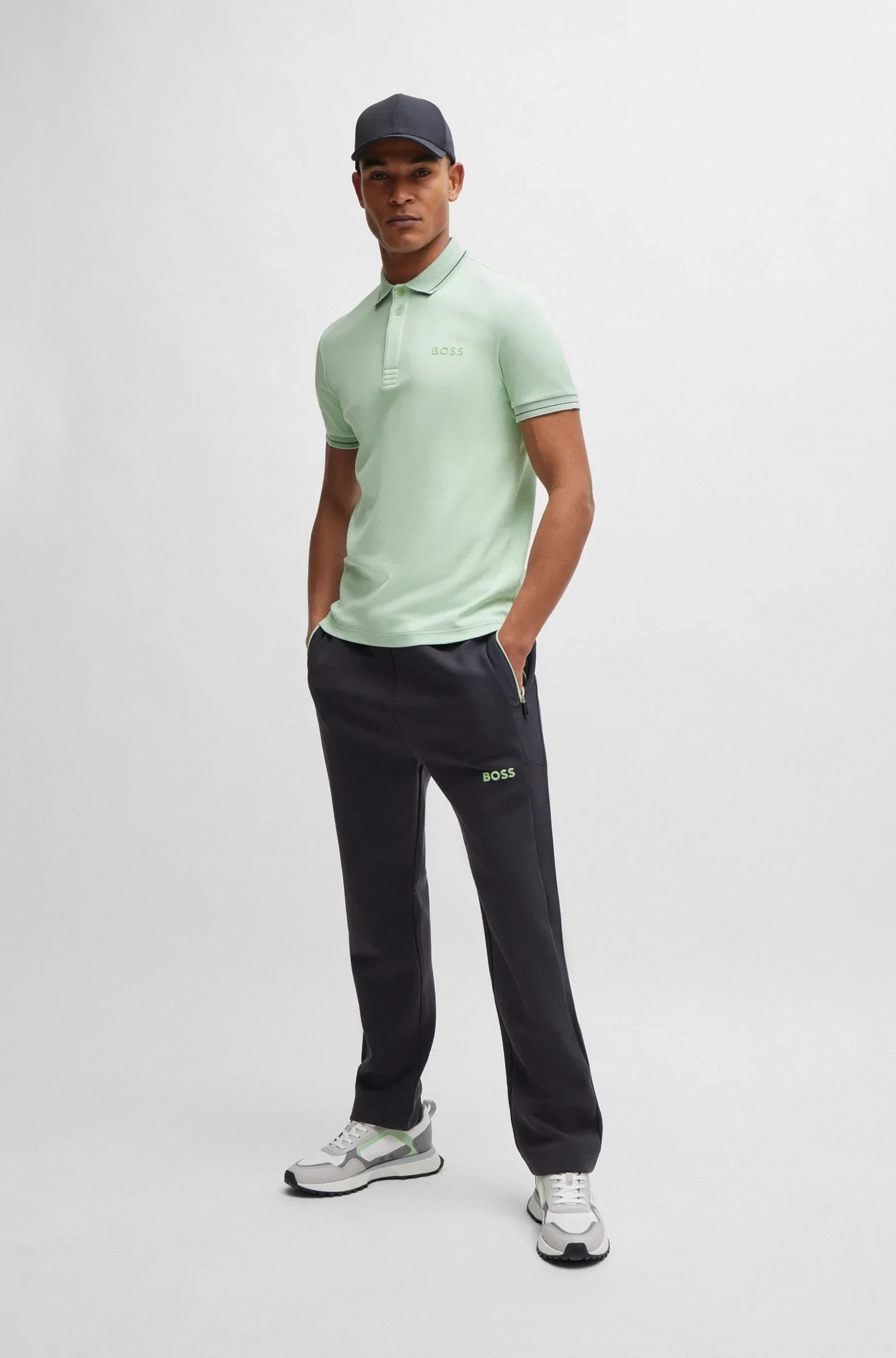 Un polo moderne BOSS Homme à la coupe ajustée, confectionné en coton doux et pourvu d’un col et de poignets en jacquard de mesh ainsi que d’un logo en mesh sur la poitrine.