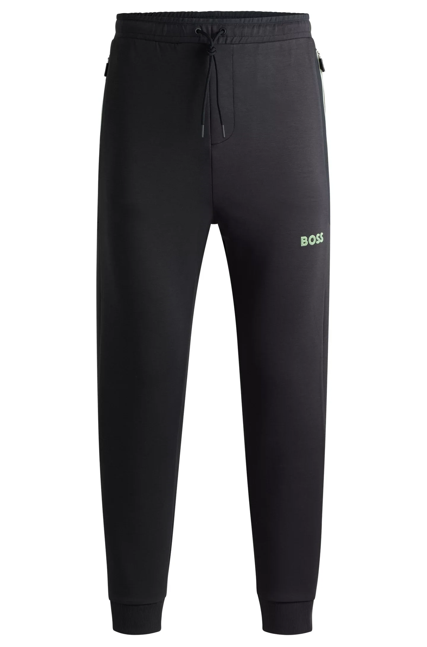 Un pantalon de survêtement sportif BOSS Homme à la coupe droite, confectionné en tissu stretch, resserré au bas des jambes et orné d’un logo en relief ainsi que de finitions en mesh. Pour nos articles BETTER BOSS, nous utilisons au moins 60 % de matières premières plus responsables. Cette pièce est confectionnée en coton cultivé conformément à l’engagement de HUGO BOSS en faveur de l’utilisation de coton et de fibres végétales provenant de sources appliquant des pratiques de gestion améliorées pour le bien de l’Homme et de l’environnement.