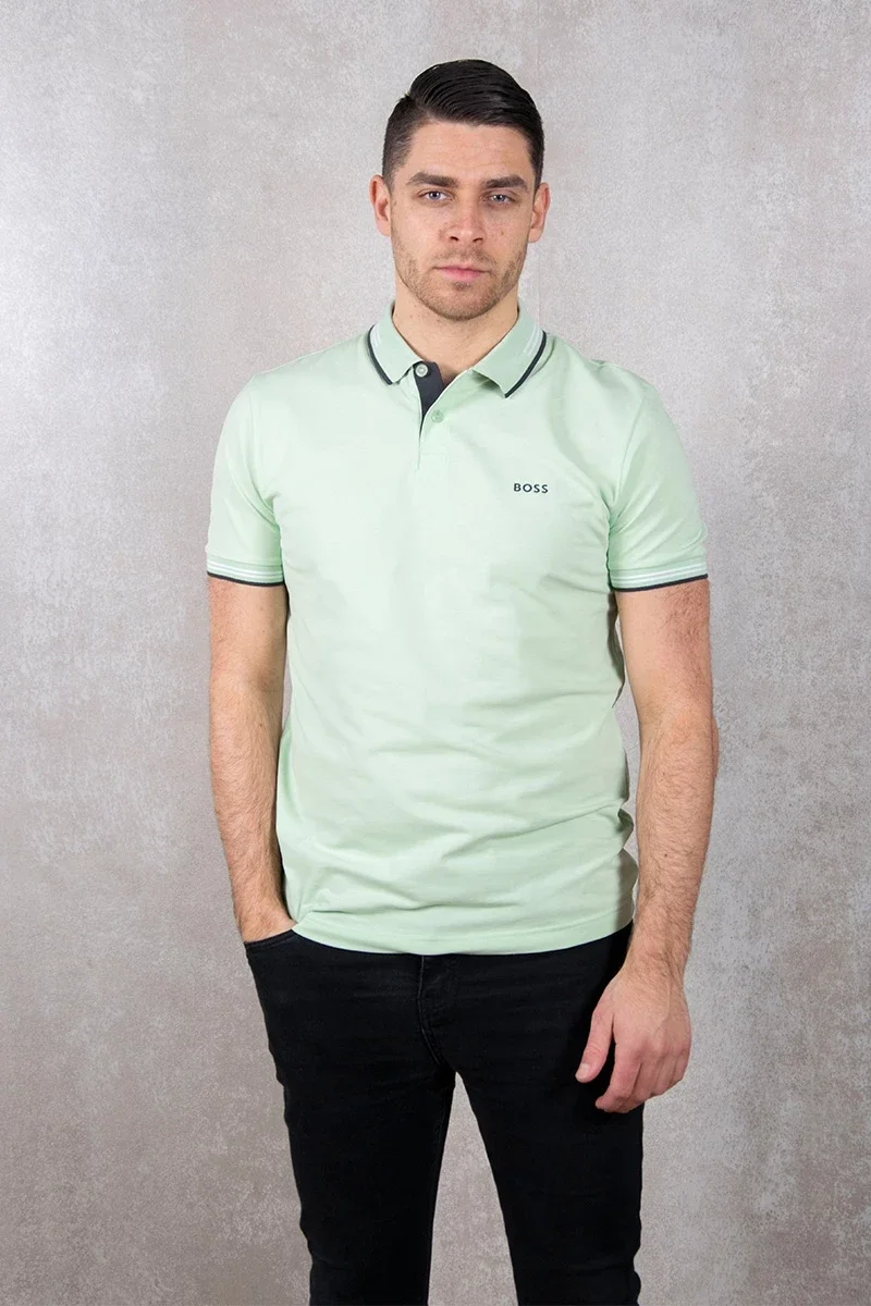 Un polo contemporain à la coupe affûtée signé BOSS Homme, confectionné en coton stretch et orné de rayures et d’un logo contrastants.