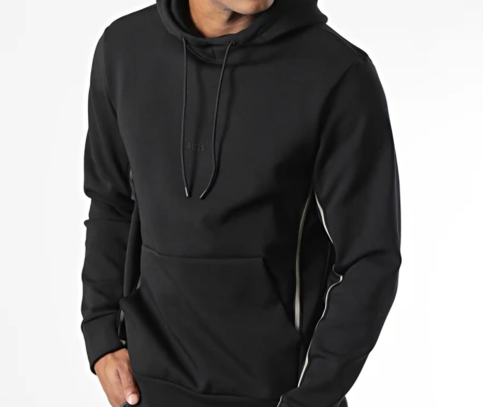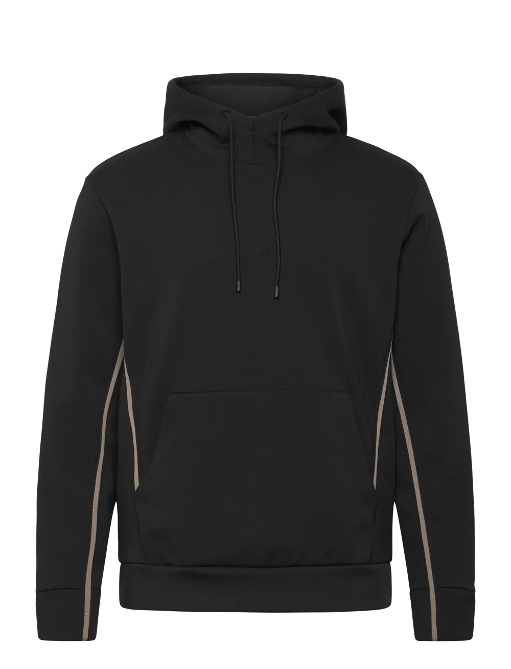 Un sweat à capuche BOSS à la coupe Regular. Pourvue d’un logo moulé et de bandes sportives, cette pièce est confectionnée en coton stretch mélangé.