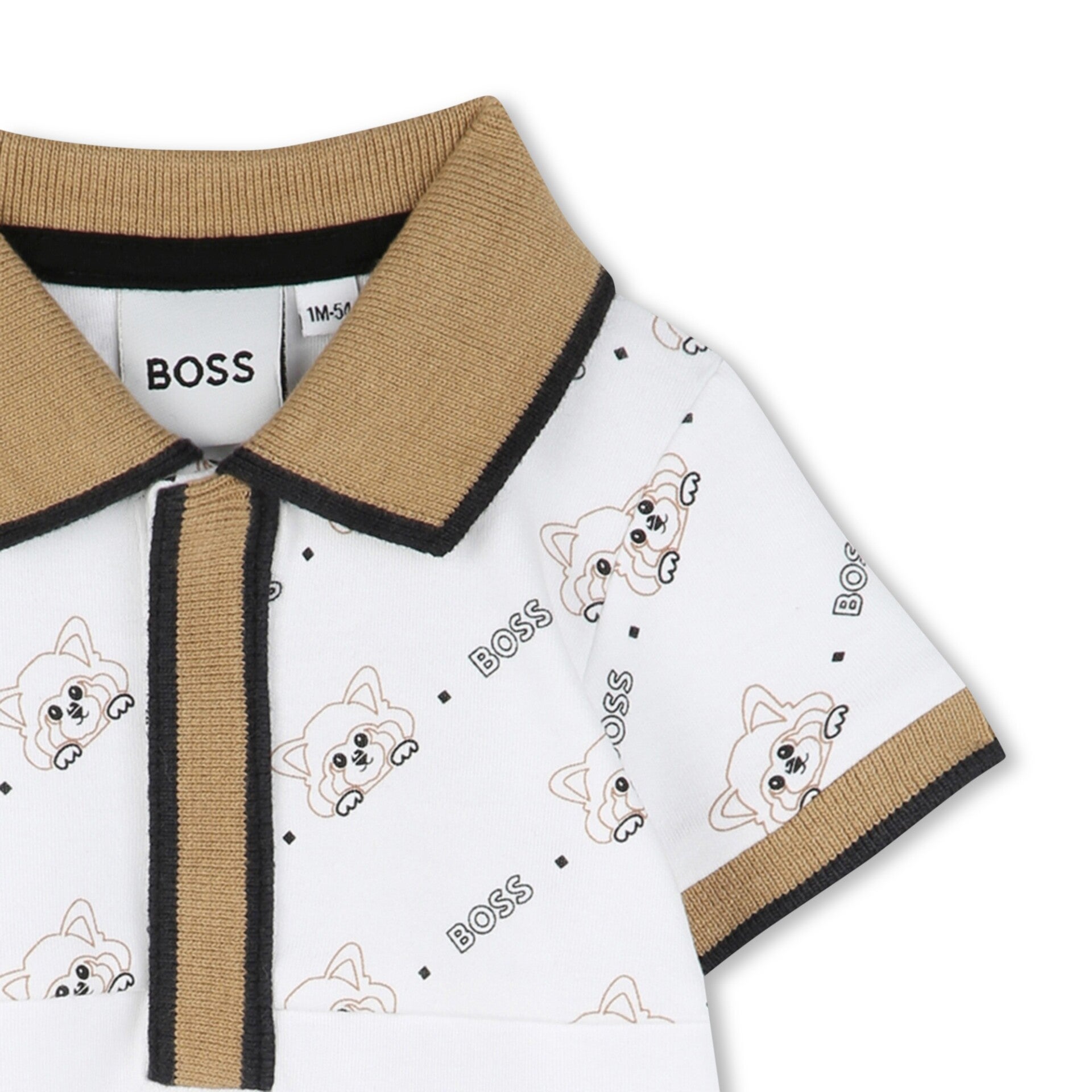 Cette combinaison-short BOSS permet de composer une tenue moderne et agréable à porter pour les bébés. Elle se démarque par sa partie supérieure avec imprimé monogramme panda roux. Le col polo ajoute une pointe d'élégance. Ce modèle est confectionné en coton issu de l'agriculture biologique.