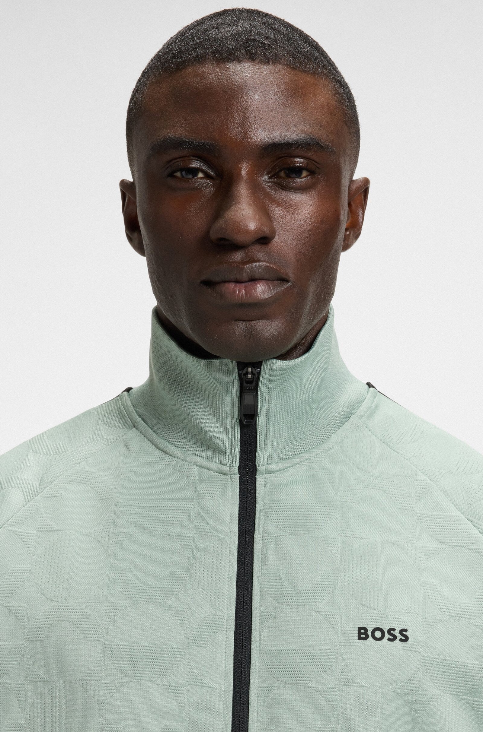 Orné de rayures sportives sur les manches, ce sweat zippé BOSS Homme est une pièce parfaite. Coupe décontractée. Tissu stretch orné d’un motif jacquard circulaire original.