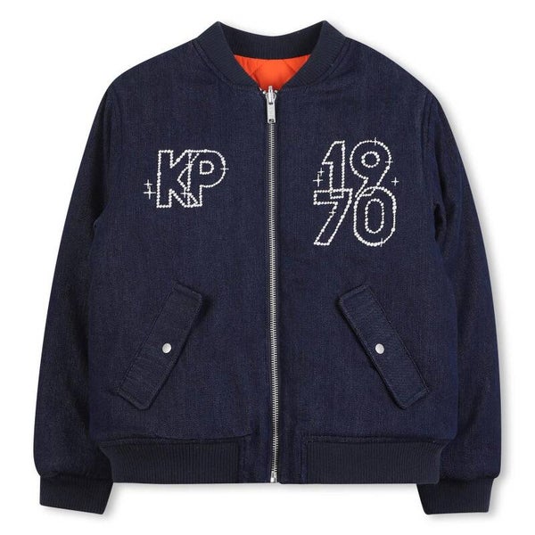 Veste réversible avec fermeture zippée. Côté jean en 100% coton, deux poches devant, broderies siglées devant. Côté matelassé (100% polyester), étiquette siglée devant. REMBOURRAGE OUATE.