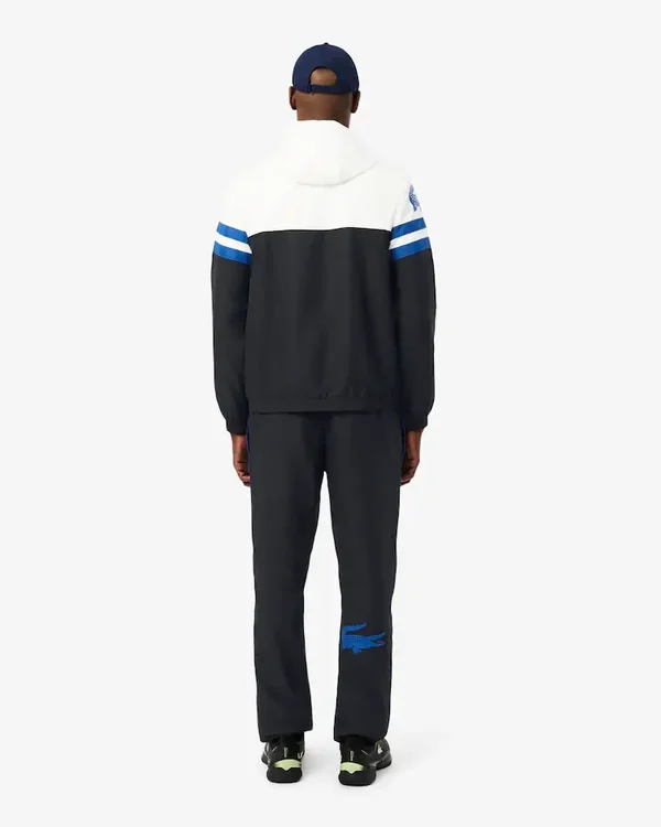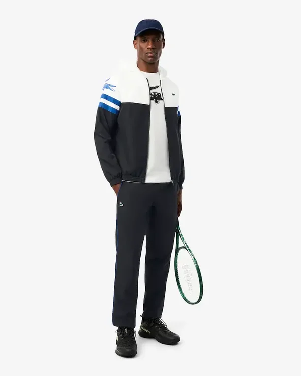 Marque sport et style depuis 1933, Lacoste dévoile une veste empreinte de ses codes. Elle est confectionnée en taffetas diamanté, matière signature qui offre légèreté, respirabilité et protection contre la pluie grâce à un traitement déperlant. À sa fonctionnalité s'ajoutent un color-block emblématique et un imprimé crocodile, pour un look sportif affirmé.