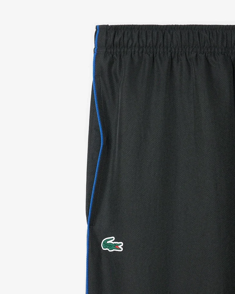 Ce pantalon de survêtement est un concentré de codes Lacoste, marque sport et style depuis 1933. Confectionné en taffetas diamanté, matière signature légère et respirante qui libère le mouvement, il se distingue par son imprimé crocodile et des liserés contrastants emblématiques. Pour un look sportif affirmé.
