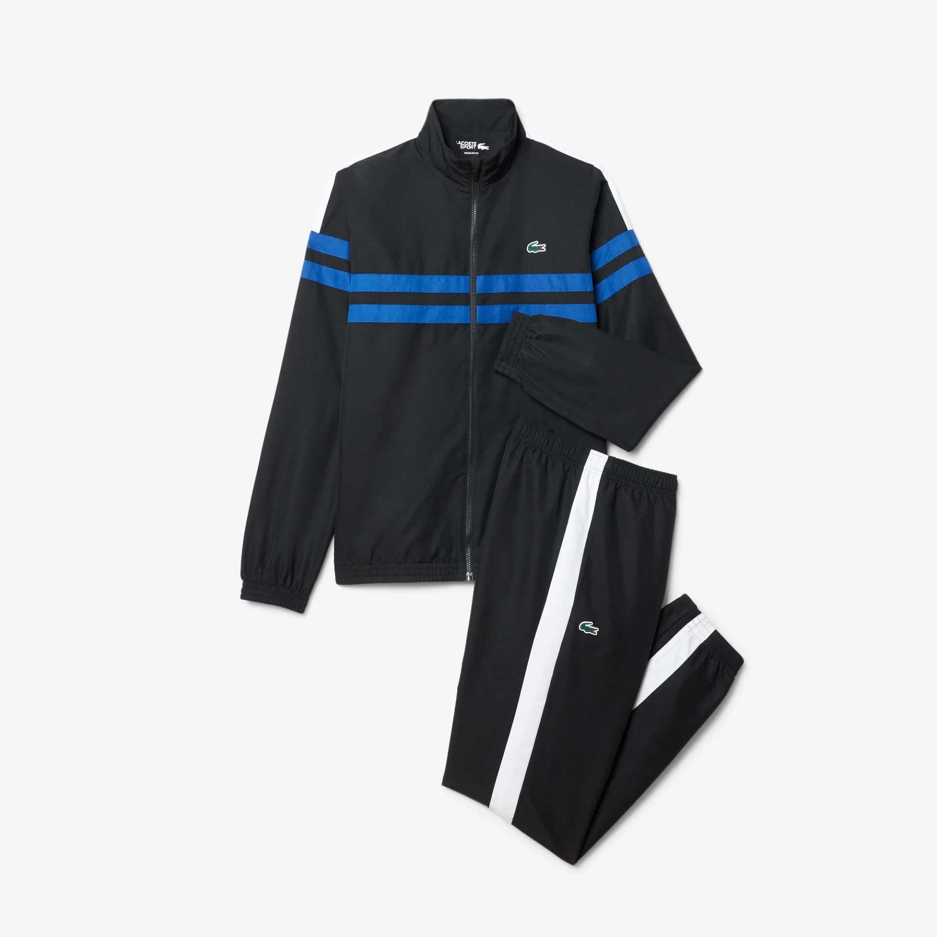 Cet ensemble de survêtement est un concentré de codes Lacoste, marque sport et style depuis 1933. Confectionné en taffetas diamanté, matière signature légère et respirante qui libère le mouvement, il se distingue par son design color-block emblématique et un large imprimé crocodile. Pour un look sportif affirmé.
