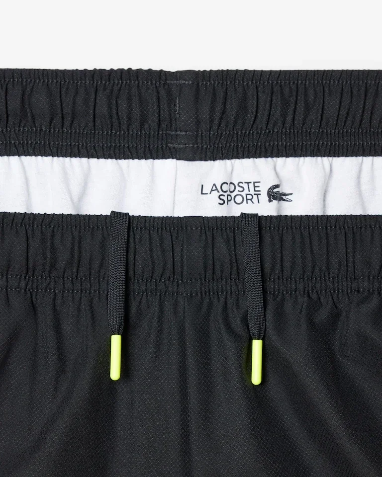 Ce short est un concentré de codes Lacoste, marque sport et style depuis 1933. Confectionné en taffetas diamanté, matière signature légère et respirante qui libère le mouvement, il se distingue par son large imprimé crocodile et des liserés contrastants emblématiques. Pour un look sportif affirmé.