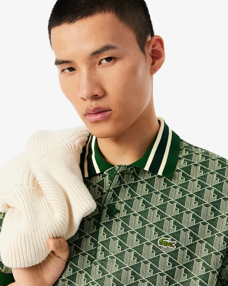 Avec son allure originale, ce polo revisite les codes du modèle iconique inventé par Lacoste en 1933. Son motif monogramme tricoté en jacquard, ses finitions bords-côtes et son col contrasté à rayures créent la différence. Une silhouette d'aujourd'hui, aussi confortable qu’élégante.