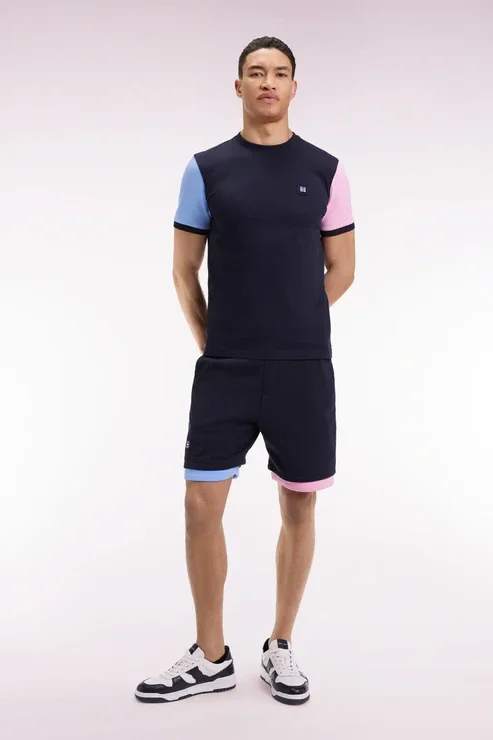 T-shirt à manches courtes contrastées en coton marine