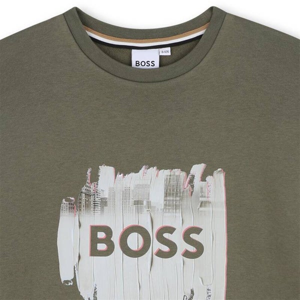 Sweat à capuche en molleton gratté coton polyester, illustration fantaisie et logo BOSS imprimés devant