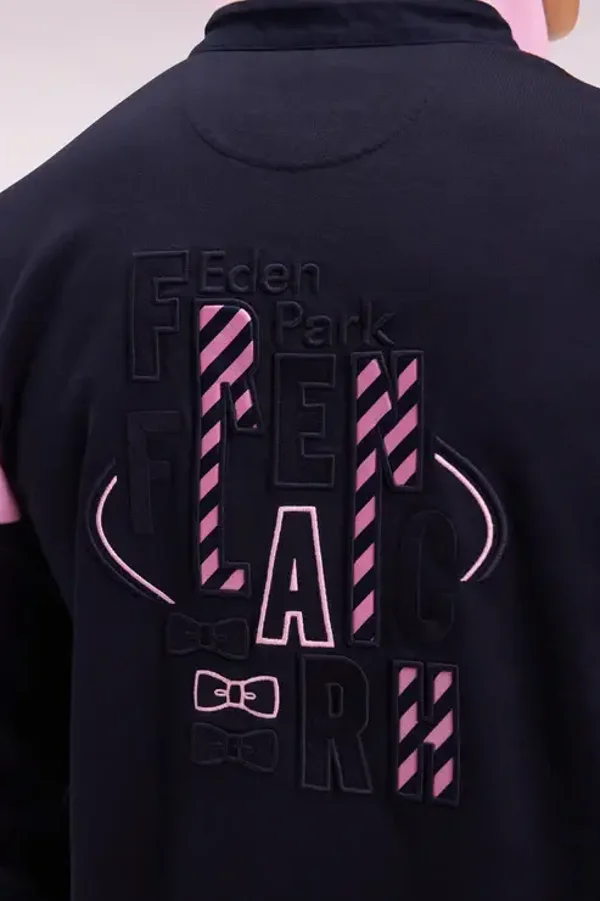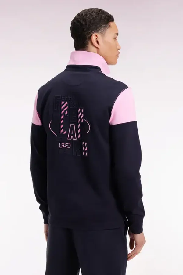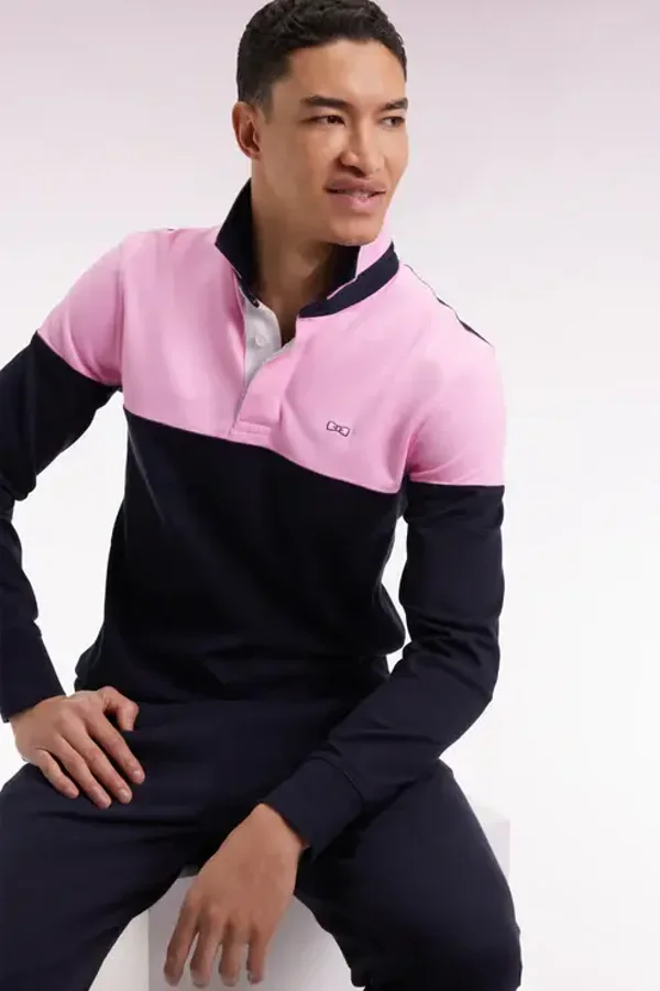 Maillot à manches longues en jersey bicolore marine et rose coupe droite