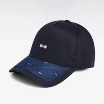 Réalisée en piqué coton marine cette casquette homme ajustable se distingue par sa broderie emblème rose et sa visière habillée par un motif nœud papillon et de fines rayures diagonales. Son ajustement facile et son design sobre en font une pièce sport-chic par essence